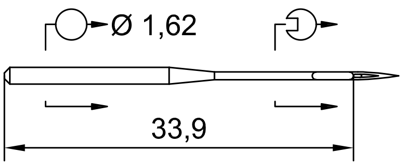 • Garums līdz adatas acij: 33,9 mm