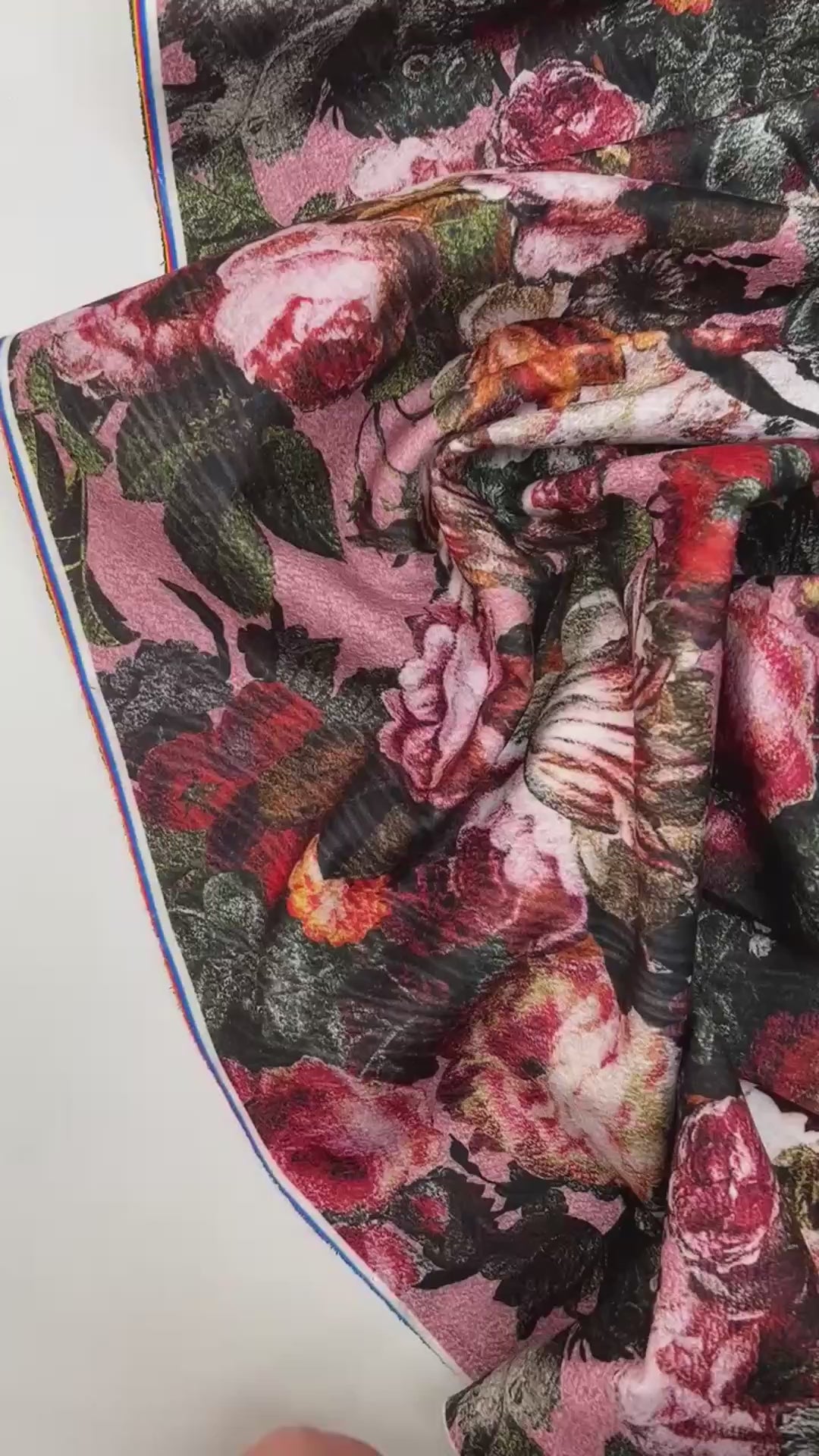 Itālijā ražots blīvs divkāršā pinuma audums ar izteiksmīgu daudzkrāsainu ziedu rakstu. Audums ir silts, noturīgs un nestiepjas, ar labu struktūru un formu. Piemērots mēteļiem, jakām un strukturētiem virsdrēbju modeļiem.