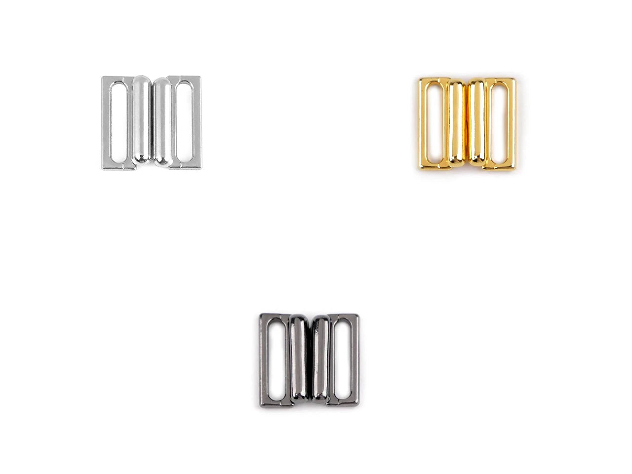 Kvalitatīva metāla bikini, krūšturu aizdare peldkostīmiem un apakšveļai. Paredzēta 14 mm platām lencēm vai gumijām, nodrošinot drošu un ērtu aizvēršanu.