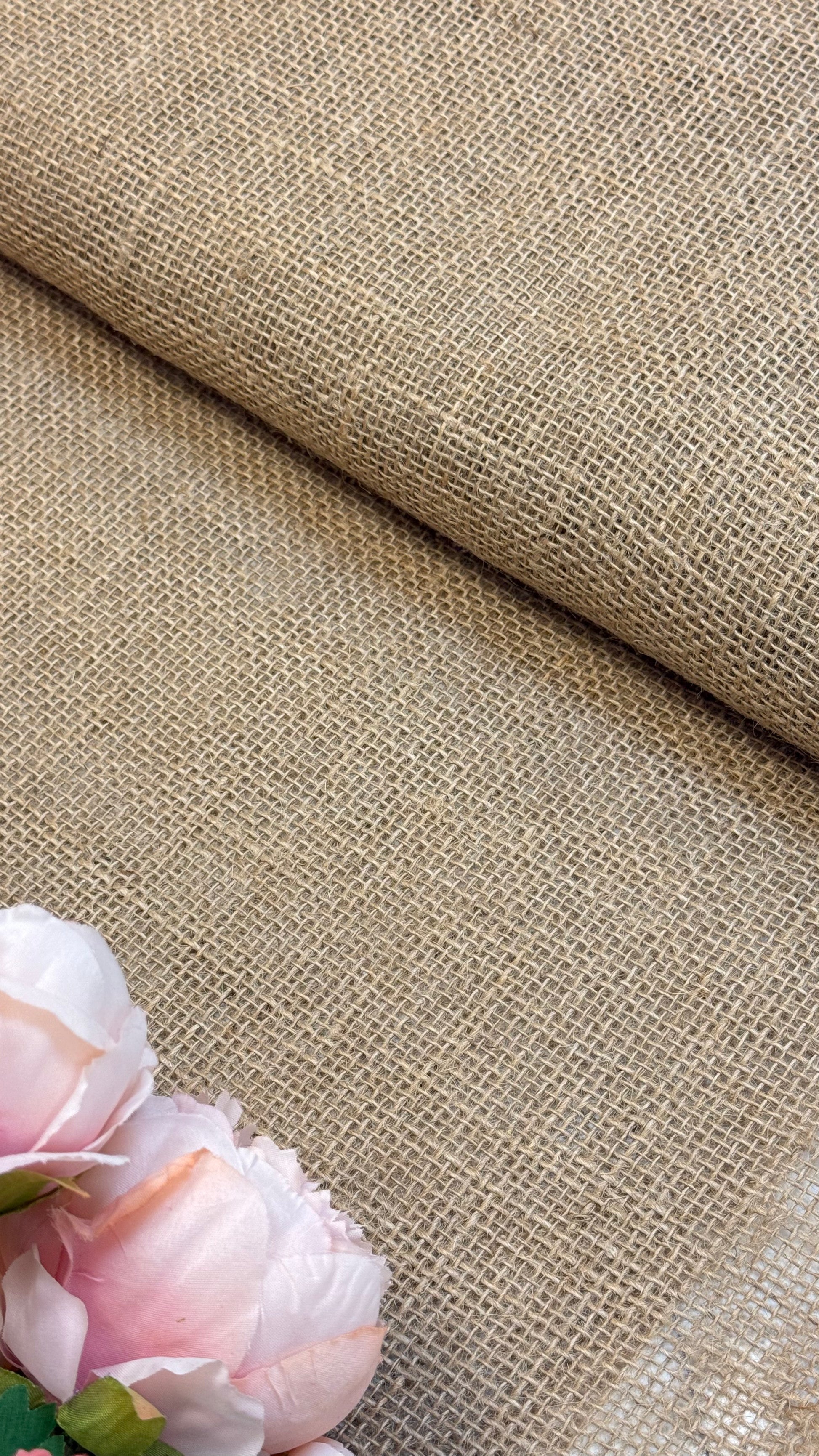 Raupne dekoratiivne jute kangas. Jute kangas on looduslik materjal, mis on saadud jute taime kiududest. See on vastupidav, vähe imav ja pakub loomulikku karedust. Seda kasutatakse sageli erinevate toodete valmistamisel, sealhulgas tekstiiltoodetes ja dekoratiivsetes elementides.