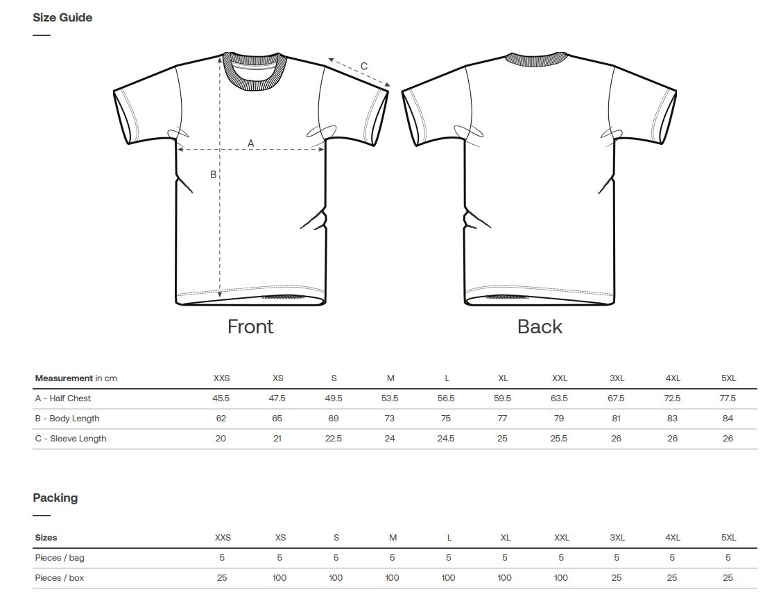 Kangast on pestud, et tagada stabiilne kuju ja meeldiv tunne nahal. Sobib DTG-ks, siiditrükiks ja tikandiks.